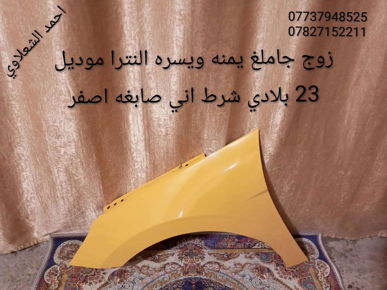 مكاني بغداد الشعله *********** *********** زوج جاملغ النترا موديل 23 شرط بلادي اني صابغهن اصفر لايتات اصلي بلادي النترا 16 بلاجكتورات اصلي بلادي موديل 16 تخم تاير حجم 16 جديد تخم تاير حجم 17 كاعيات مطريات اصليه