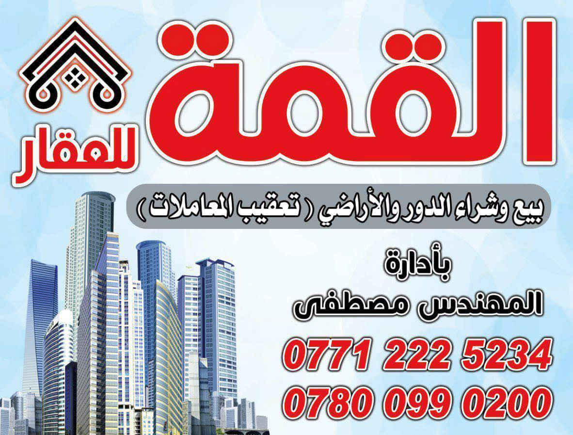 سلام عليكم متوفر عروض مناسبة وجاهزة في مقاطعتين (3/10 او 2/10 اومالمالكي) 🔴🔴🔴🔴🔴🔴🔴🔴🔴 1_ الي يريد تقيم (بدون مقابل) 2_ عندك قطعة للبيع احنا نشتري 3_ مصاريف بيان علينا 4_ نتكاتب مباشر وفلوس كاش 5_ اذا عندك قطعة نعرضها الك 🔴🔴🔴🔴🔴🔴🔴🔴🔴 أي استفسار تفضل خاص او اتصل *********** وتساب المهندس مصطفى