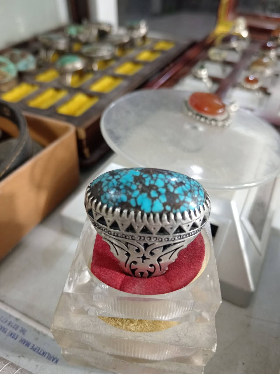خاتم فيروز نيشابوري عنكبوتي طول الحجر ٣ سم وزن الخاتم ٢٨.٥ غرام صياغة ثقيلة سعر الخاتم ١٤٠ الف العنوان كركوك ولدينا توصيل لجميع المحافظات وأي إستفسار الإتصال بالواتساب ***********