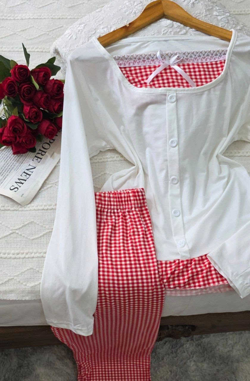 بيجامه فيونكات • فالينه قطني ناعم • فري سايز ٥٠-٧٧