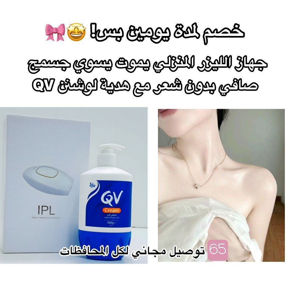 بمناسبة افتتاح متجري سويت عرض 🥹 على جهاز الليزر المنزلي ثلجي IPL ❄ يقلل الشعر بنسبة كبيرة يفتح البشرة ويخليها ناعمة مثل الحرير ✨ نص مليون ومضة + نتائج تبين من أول شهر ✅ يشتغل على كل الجسم + بدون ألم 😍 السعر القديم 100 ألف ❌ الجديد بس إلج : 65 ألف 💸 توصيل مجاني لكل محافظات العراق 🎁 وهديـة لطيفة من متجرنا مرطب QV✨ مباقي غير كم قطعة 😭🔥 **إذا كنت صاحب هذا الإعلان وتريد حذفه لأي سبب، رجاءا أرسل رسالة إلى الدعم الفني**