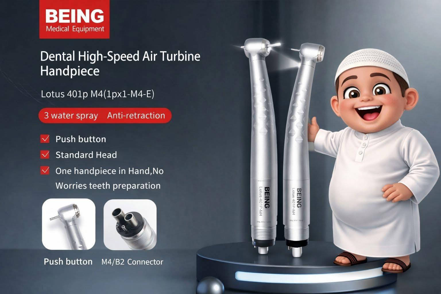 🌙 ناطق يحييكم.. وبلمسة إبداع من شركة الطريق الرابح يوافيكم! 🦷 يا هلا بدكاترتنا المبدعين وأصحاب العيادات المتميزة.. ناطق، الشخصية الإعلامية لشركة الطريق الرابح، يطلّ عليكم بنفحات رمضانية وبأفضل الحلول التقنية لعياداتكم! لأن شهر الخير يحتاج دقة وراحة بالشغل، ناطق اختارلكم اليوم التورباين الأقوى من ماركة BEING العالمية (موديل Lotus 401p)، اللي يجمع بين الأداء العالي والتصميم العملي. 🧐 ليش "ناطق" ينصحكم بهذا التورباين بالذات؟ لأن مواصفاته صُممت حتى تخلي شغلكم أسرع وأدق: • 🚿 نظام بخ ثلاثي (3 water spray): يضمن تبريداً مثالياً للسن وللبير أثناء الحفر، ويمنع الحرارة الزائدة بكل سهولة. • 🛡️ خاصية Anti-retraction: نظام حماية يمنع سحب السوائل للداخل، لضمان أعلى معايير التعقيم والنظافة. • 🔘 تبديل سريع (Push Button): بضغطة زر وحدة تكدر تبدل البير (Bur) بدون أي تعب أو ضياع للوقت. • ⚙️ توافق تام (M4/B2 Connector): يربط مباشرة وبسهولة على أغلب أنواع كراسي الأسنان. • 💎 رأس قياسي (Standard Head): يعطيك توازن مثالي بين قوة الحفر والرؤية الواضحة داخل فم المريض. ناطق يگوللكم: "صيام مقبول وشغل بالأصول.. وية BEING التحضير يصير أسهل حلول!" 😌 نتمنى لكم نجاحاً مستمراً في عملكم مع شركة الطريق الرابح. 📍 متوفر الآن بجودة تليق بخبرتكم. 💬 لـلــطلب والاسـتـفـسـار الاتـصـال عـلـى: 📞 *********** (فـايـبـر & تليگرام) 🔗 رابط الواتساب المباشر وأيـضـاً مـراسـلـه الـمـاسـنـجـر 📸 Insta: hussen_alshaibani 🚚 يـتـوفـر لـديـنـا تـوصيـل لـجـمـيـع مـنـاطـق بـغـداد والـمـحـافـظـات 💳 ويـتـوفـر لـديـنـا نـظـام الـبـيـع بـالأقـسـاط #ناطق #الطريق_الرابح #أدوات_أسنان #رمضان_مبارك #طب_أسنان #BEING_Medical