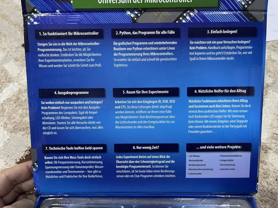 🚀 ابدأ رحلتك في عالم الإلكترونيات وبرمجة لينكس! نقدم لكم مجموعة التعلم المميزة Elektronik mit Linux من Franzis — الحل المثالي لكل من يريد دخول عالم البرمجة والإلكترونيات بطريقة عملية وممتعة. 🔹 ٣٣ تجربة إلكترونية عملية 🔹 لوحة تجارب USB 🔹 ٢٥ قطعة إلكترونية 🔹 كتيب تعليمي مفصل من ١٠٤ صفحات 🔹 تعلم برمجة بايثون على نظام لينكس خطوة بخطوة 🔹 التحكم بالأجهزة الخارجية والمكونات الإلكترونية باستخدام بايثون من تشغيل مصابيح LED وأجهزة الاستشعار إلى قياس التردد والتحكم بالمحركات والسيرفو — ستتعلم كيفية برمجة المتحكم والتحكم بالمكونات والأجهزة الخارجية بسهولة واحترافية. 📚 مناسبة للطلاب، والهواة، وكل من يرغب بتعلم البرمجة والإلكترونيات وبناء مشاريع حقيقية من الصفر. 📩 راسلنا الآن لمعرفة السعر والتوفر. **إذا كنت صاحب هذا الإعلان وتريد حذفه لأي سبب، رجاءا أرسل رسالة إلى الدعم الفني**