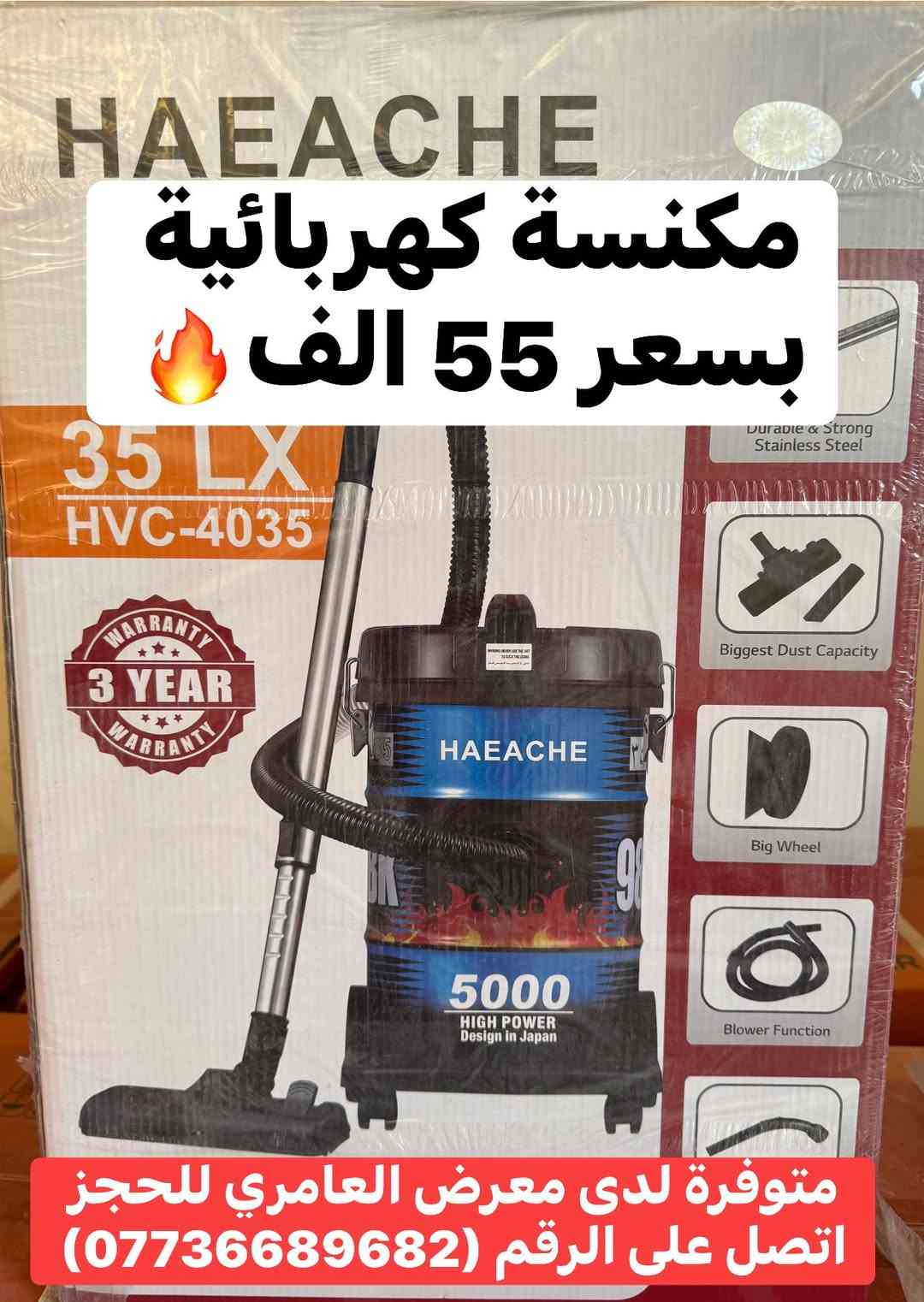 عرض_خاص مكنسة كهربائية بسعر 55 الف دينار لدى معرض العامري🔥✨ متابعينا الاعزاء تم وصول مكنسة كهربائية ماركة (HAEACHE) وبسعر مميز سارع بالحجز قبل نفاذ الكمية ✨ 📌مميزات ▪️متوفر بسعة 35LX✅ ▪️ شفط قوي ينظف المفروشات بسهولة ▪️ كيس غبار كبير وسهل التنظيف ▪️ موفرة للطاقة الكهربائية وصوت منخفض 📞 للتواصل والاستفسار: [***********] 📌 التوصيل متاح لجميع مناطق كربلاء 📍العنوان: كربلاء _ حي الرسالة_مقابل ملعب كربلاء الدولي @أبرز المعجبين #معرض_العامري #تخفيضات #كربلاء #تسوق #عروض #هيتاشي #عرض #أجهزة_كهربائية_كربلاء #hyundai #توصيل_كربلاء #كربلاء_تسوق #hitachi #خلاطات #خلاط #مكنسة #مكنسة_كهربائية #توصيل_كربلاء #اجهزة_منزلية
