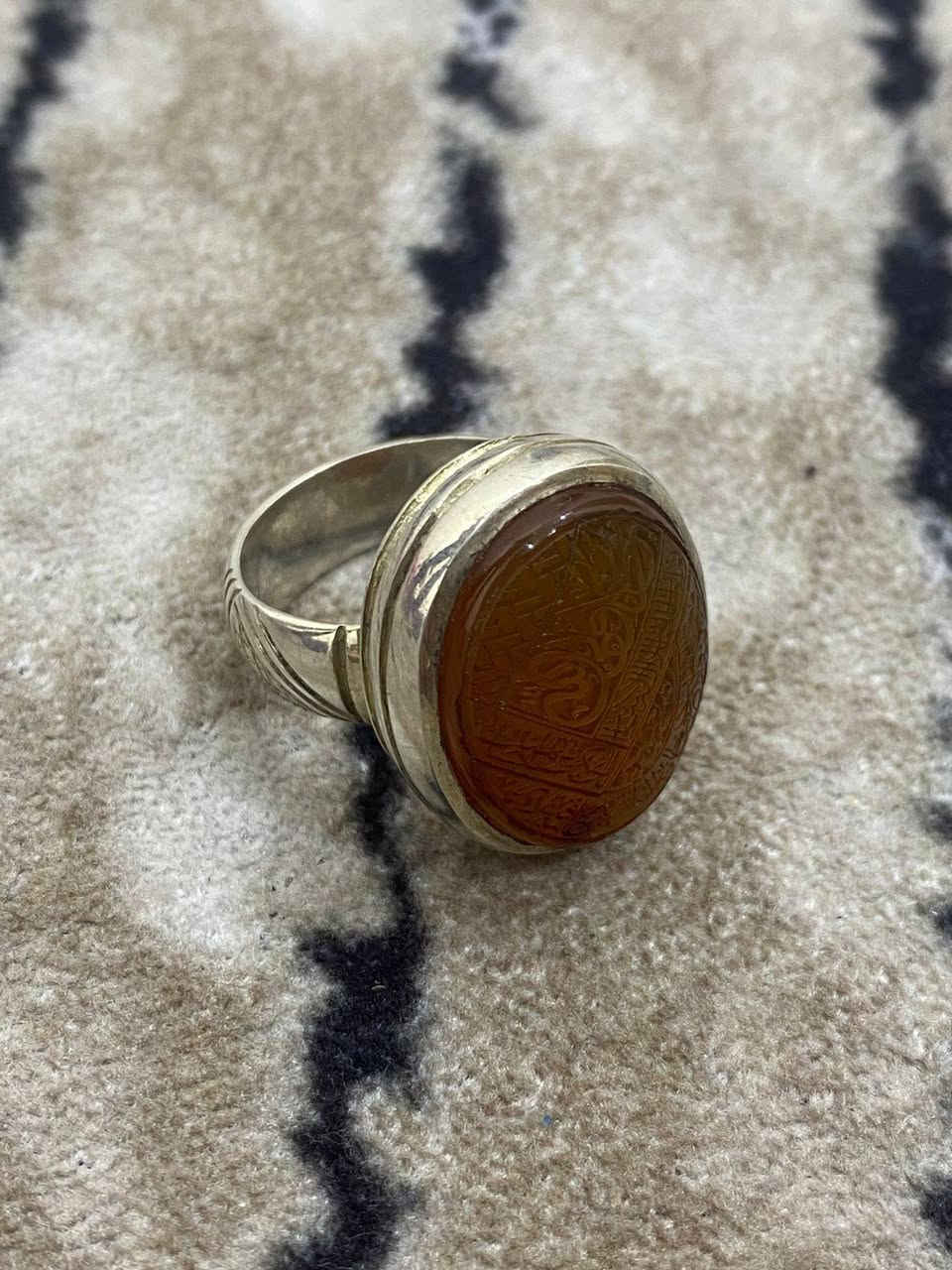 خاتم رجالي • عقيق يماني • منقوش علي ولي الله