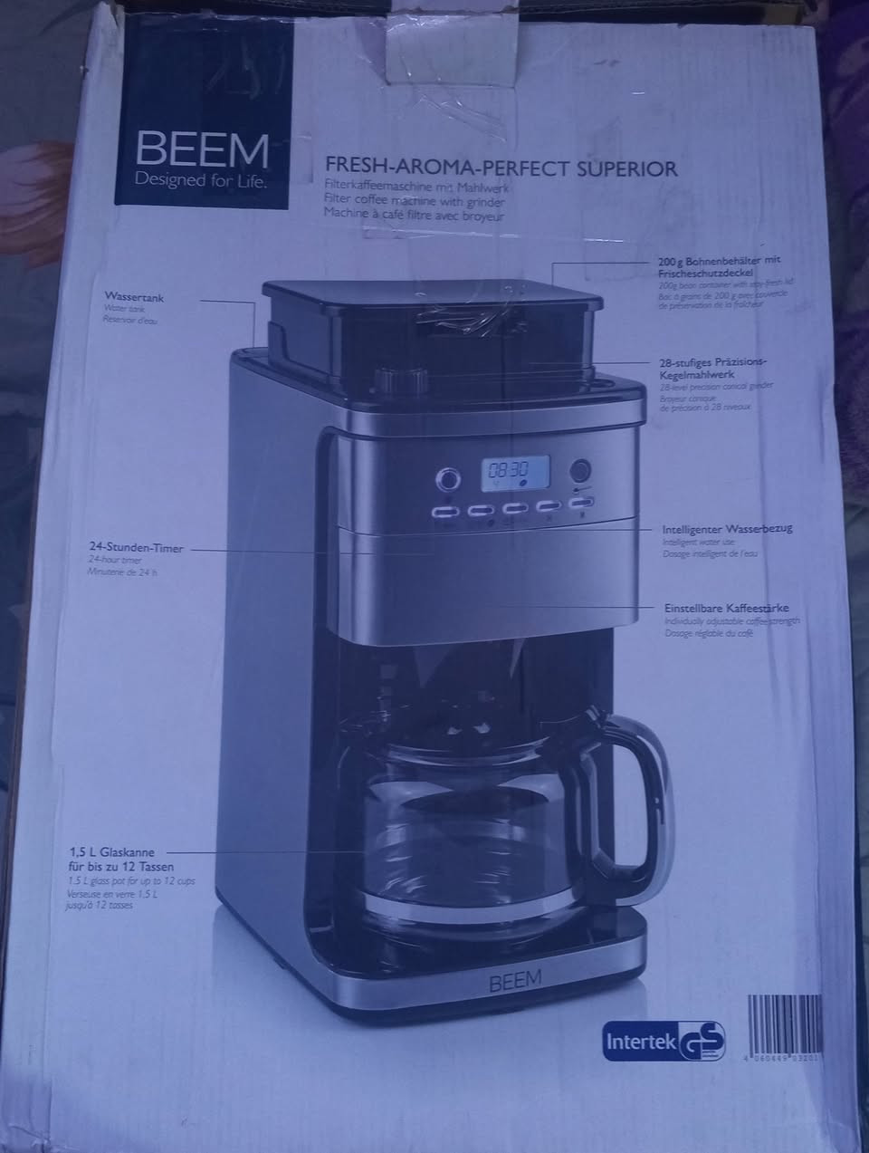 السلام عليكم ماكينة قهوة ألمانية أصلية BEEM Fresh-Aroma-Perfect Superior 💎 ✔️ تطحن البن فريش بنفسها (مطحنة مدمجة) ✔️ 28 درجة تحكم بالطحن ✔️ تحكم بقوة القهوة حسب الرغبة ✔️ مؤقت 24 ساعة ✔️ سعة 1.5 لتر (تكفي لحد 12 فنجان) ✔️ خزان بن 200 غرام مكاني بغداد حي الجهاد متوفر توصيل هم **إذا كنت صاحب هذا الإعلان وتريد حذفه لأي سبب، رجاءا أرسل رسالة إلى الدعم الفني**