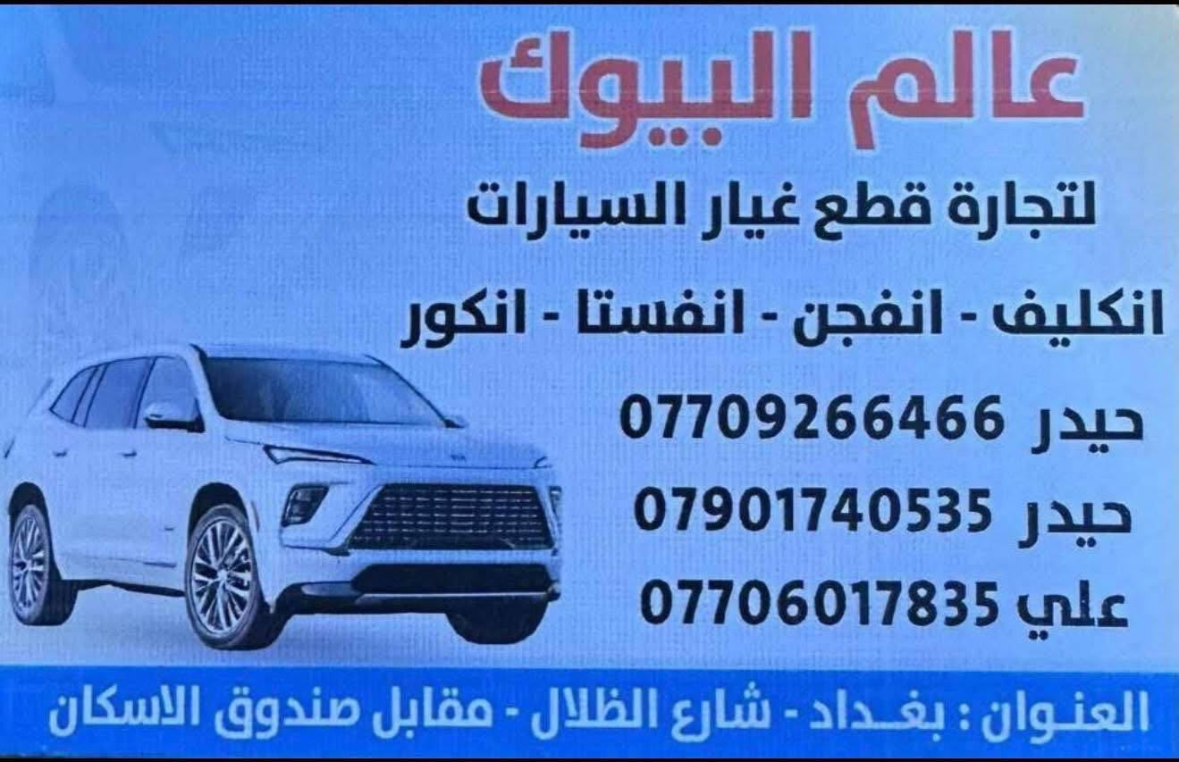 يعلن كراج عالم البيوك 📣📣📣 عن توفر كصات بيوك #تفصيخ_بيوك انكليف 2021-2024 #تفصيخ_بيوك انكور 2020-2025 #تفصيخ_بيوك انفستا 2023-2025 #تفصيخ_شفروليت تريل بلايزر 2021-2025 #تفصيخ_شفروليت تراكس 2024-2025 بجم كامل كير + مكينه التفرعات كاملة بك لايت لايت حدادة امامية كاملة حدادة خلفية كاملة تخم ويل كب كشر كامل (دعاميات + جاملغات +بيبان+ صندوق) حوض خلفي النواعم كامله موجوده ✅ ***********☎️ ***********☎️ او مراسلتنا واتساب ماسنجر 📲 العنوان… 📍بغداد شارع الظلال مقابل صندوق الاسكان اهلا وسهلا بكم 🌹 يتوفر توصيل الى كل محافظات العراق