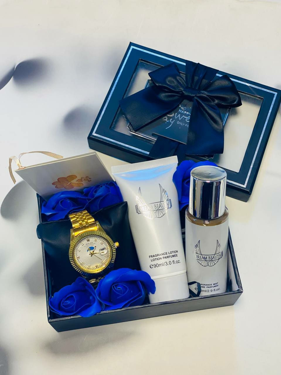 بوكس رجالي فاخر • ساعة أنيقة • سبلاش و لوشن