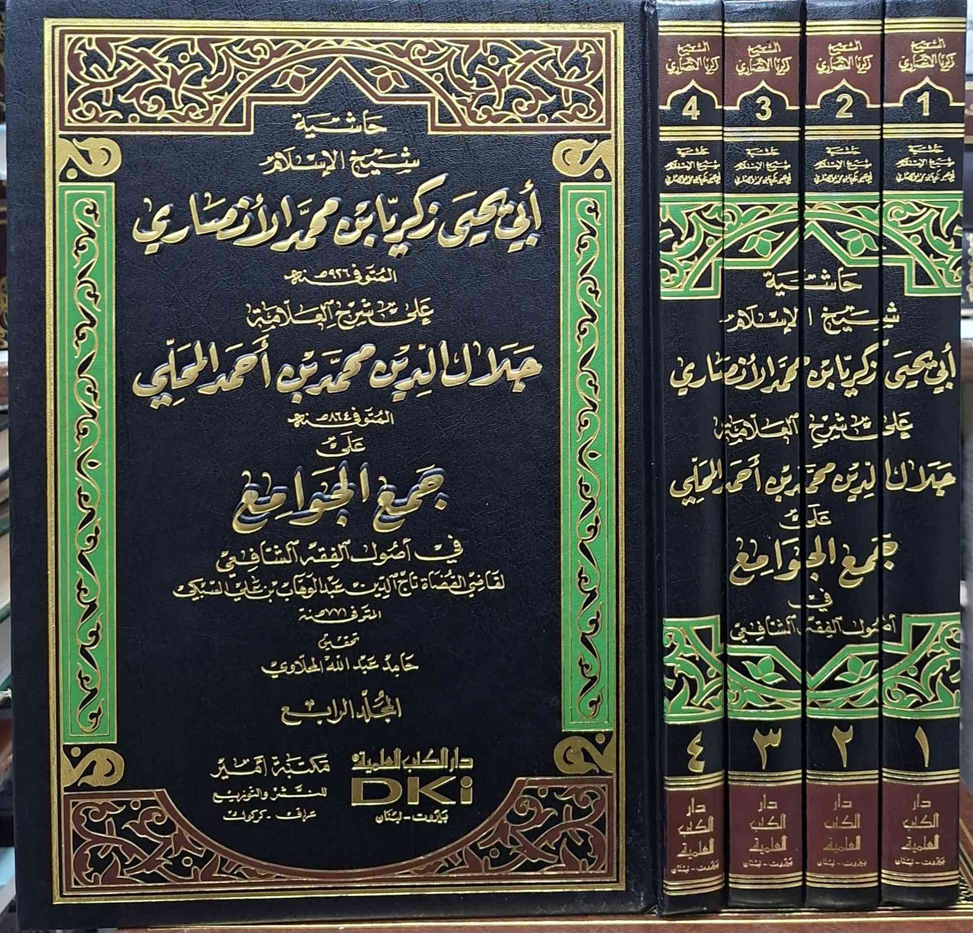 حاشية شيخ الإسلام زكريا الانصاري الشافعي على شرح الجلال المحلي على متن جمع الجوامع للامام تاج الدين السبكي في أصول الفقه . تتحدث الحاشية بشكل أساسي عن توضيح وتفسير عبارات "جمع الجوامع" الغامضة، وفك رموز شرح المحلي، وتحقيق المسائل الأصولية والقواعد، مع التركيز على الفوائد الفقهية، حجية الأدلة، ومباحث دلالات الألفاظ والأحكام الشرعية. تحقيق حامد عبدالله المحلاوي، طبعة دار الكتب العلمية شامو 4 أجزاء سعر 45 الف مكتبة عبدالله علي مراد كركوك خان القلعة للطلب والاستفسار الاتصال على رقم ***********