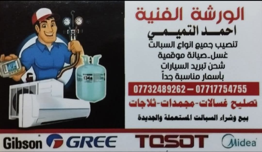 محتاج صيانة لبيتك أو لسيارتك؟ لا تدوّر وتعب نفسك! الورشة الفنية - أحمد التميمي توفر لك كل اللي تحتاجه: نصب وصيانة السبالت (كافة الأنواع). تصليح الثلاجات والمجمدات والغسالات. شحن تبريد السيارات بغاز أصلي. وكمان.. بيع وشراء السبالت المستعملة والجديدة. خبرة، أمانة، وأسعار مناسبة. اتصل الآن: ***********
