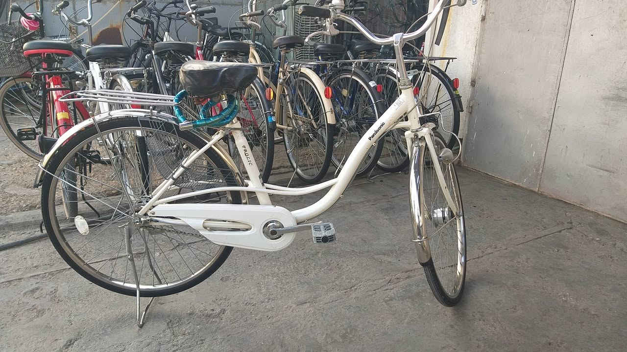 للبيع (مستخدم) بايسكل ياباني Panasonic لون أبيض ٣ سرعات Nexus سلة أمامية ***********