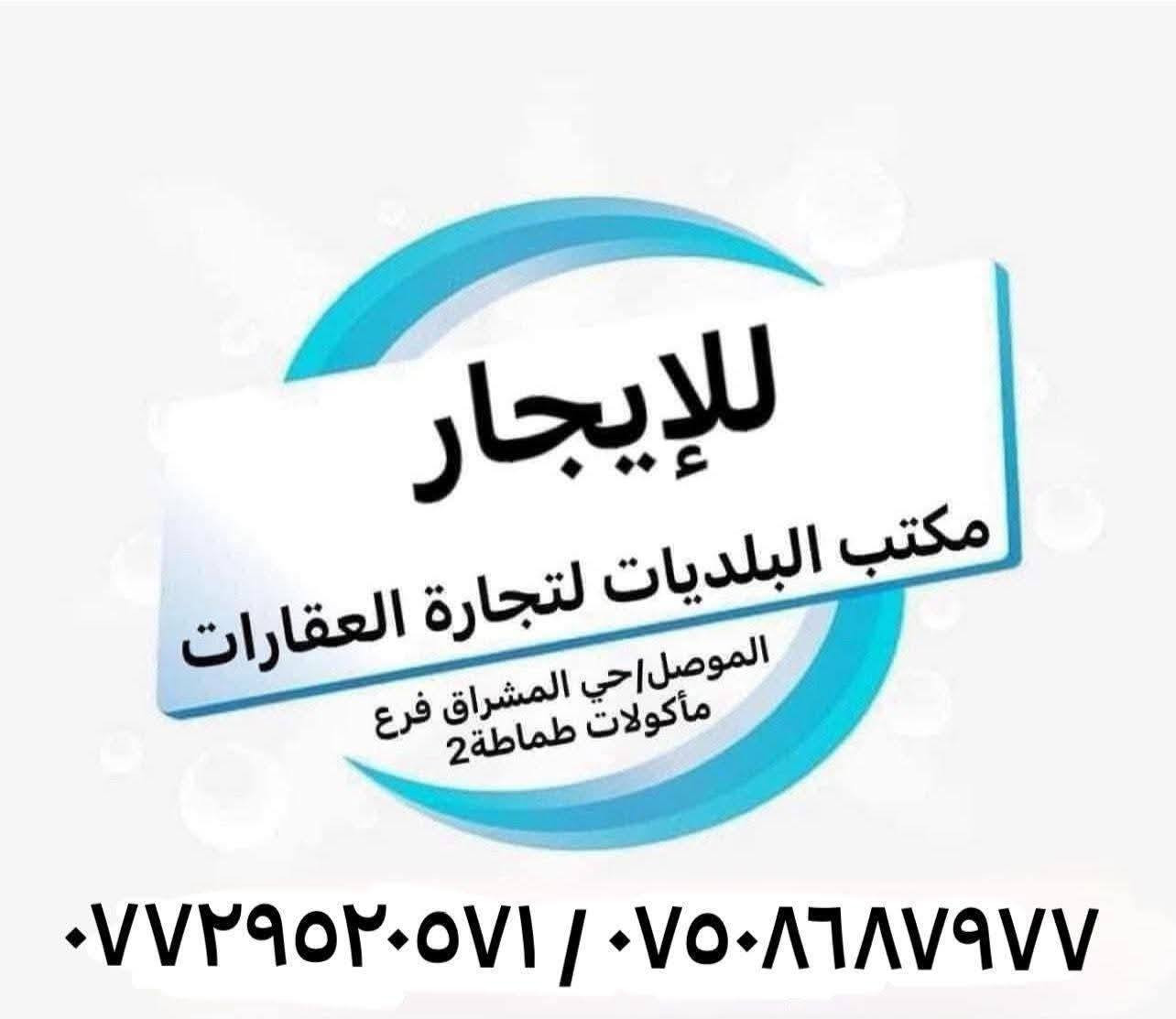 للايجار للايجار للايجار للايجار #عقارات_فنر_الحمداني مكتب البلديات للعقار شقة طابق ثاني في حي السماح مقابل مول القمة غرفتين نوم وصالة استقبال ومطبخ وصحيات وبيتونة سعر الإيجار ٢٥٠ الف للاستفسار الإتصال *********** *********** مراجعة مكتب البلديات للعقار في حي المشراق فرع مطعم طماطة بلمدخل الرئيسي