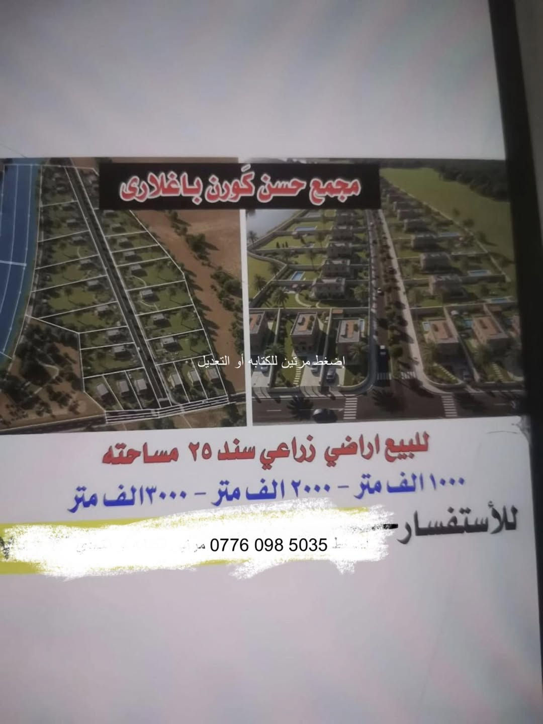 سلام عليكم مجمع حسن گورن باغلارى للبيع أراضي زراعية سند25 طريق براوجلي مساحته 1000متر -2000متر-3000متر بأسعار مناسبة للاستفسار اتصال عل رقم 0776 098 5035