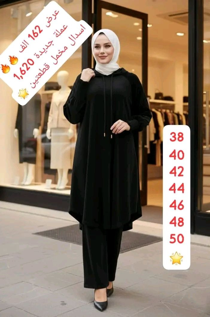 *السعر المبيع 162,000 الف 🔥🔥🔥🔥* *والسعر المبيع على العملة الجديدة 1,620 ليرة 🔥🔥🔥* حصرررري من #.AK ❤️ لباس شرعي طلعة الاكثر تميزاً ووقار ✨🌟 🌟🌟🌟 اسدال شرعي نسائي قطعتين كنزة طويلة بطاقية تحلاية ع الكم ازرار مع بنطال فضفاض بكمر مريح ✅ قماش مخمل استيكس اجنبي عالي الجودة تقيل ومكفول مع ضمان الترجيع 💯💯💯 .. لون اسود فقط 🖤🖤 مقاسات ستاندر بلبس 💯 38 40 42 44 🌟 46 48 50 🌟 توصيل ضمن الشام والارياف وشحن للمحافظات 🚚 تسليم وتوزيع فوري بإذن الله 🤍✅✅✅ **إذا كنت صاحب هذا الإعلان وتريد حذفه لأي سبب، رجاءا أرسل رسالة إلى الدعم الفني**