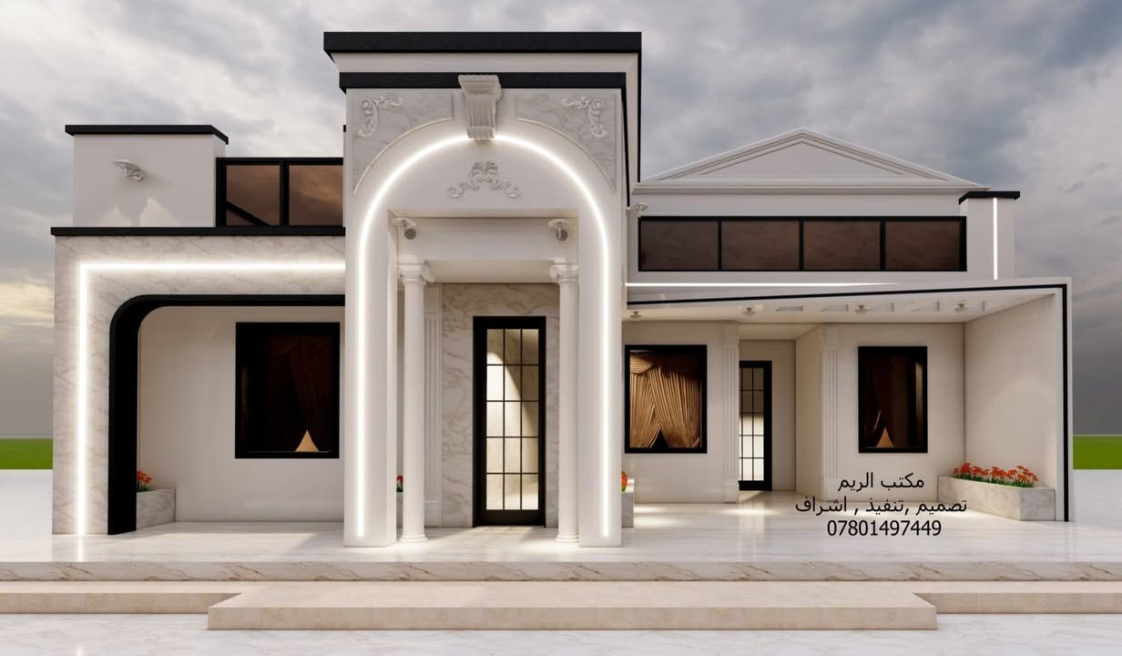 السلام عليكم تصميمي لواجهة دار سكني طابق واحد في محافظة المثنى مكتب الريم // تصميم ،تنفيذ ،اشراف العنوان السماوة الغربي قرب حسينية ال غريب بالفرع مقابل مذخر الثقة اوقات الدوام من ٤ والنصف مساء إلى ٨ ونصف ليلا للإستفسار الاتصال على الرقم *********** //***********