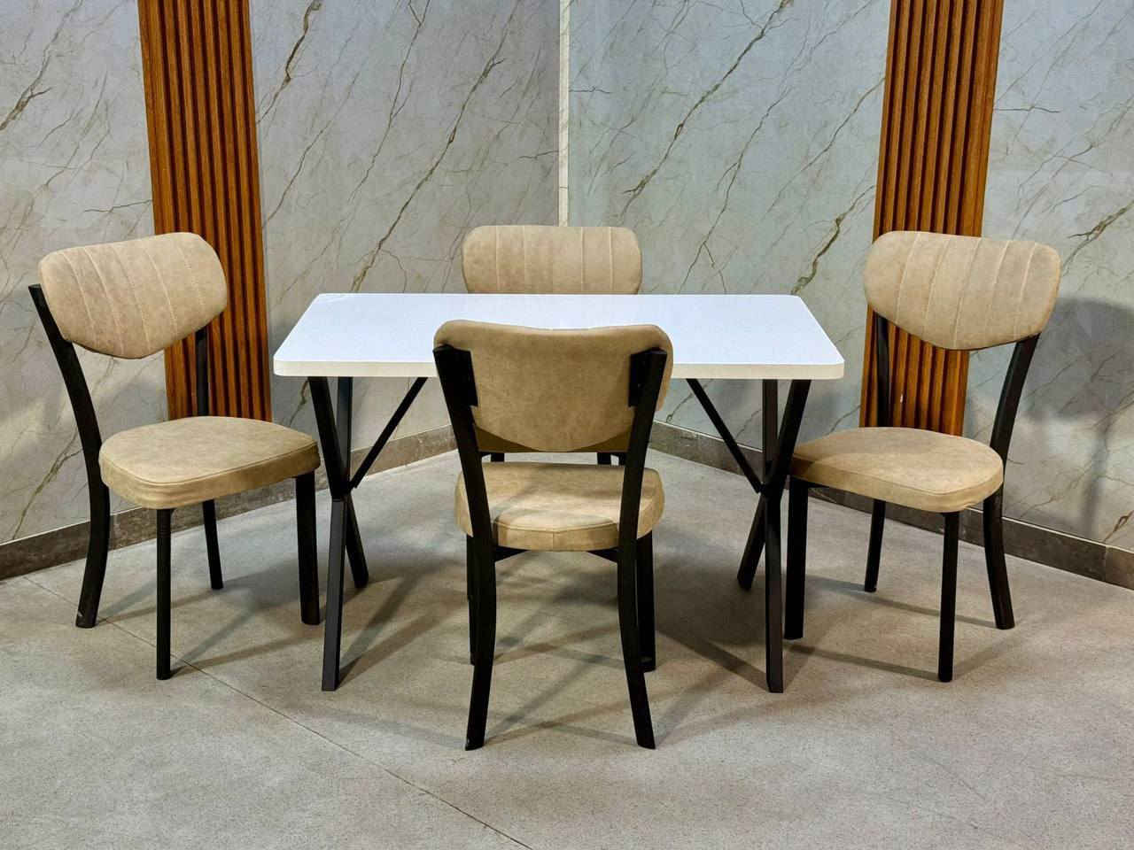 ميز طعام 4 كراسي(سطح خشب،كشنات جلد،رجل حديد) **إذا كنت صاحب هذا الإعلان وتريد حذفه لأي سبب، رجاءا أرسل رسالة إلى الدعم الفني**