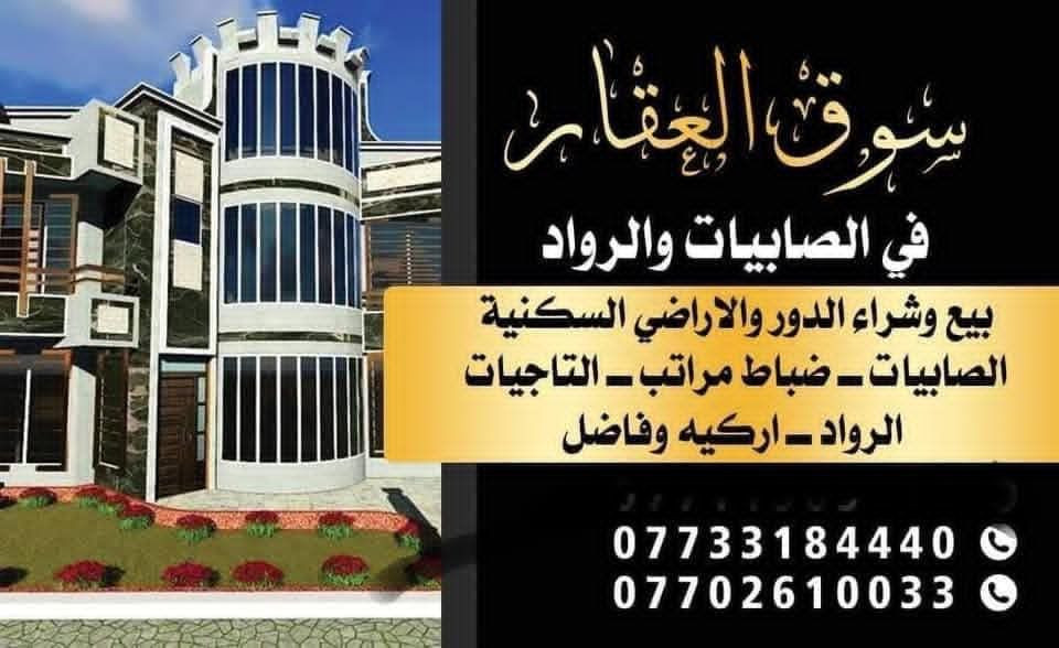 يعلن(( #مكتب سوق العقار في الصابيات والرواد ))📞📞 بيع وشراء الدور و الاراضي السكنيه ويتوفر لدينا عروض في ️الصابيات 1️⃣🏭ضباط2️⃣ 🏭مراتب3️⃣🏭 وركيه4️⃣🏭 وفاضل 5️⃣🏭 رواد 6️⃣🏭 تاجيات7️⃣🏭 رائسه8️⃣🏭 الوزراء9️⃣🏭 الثانيه توزيع المانه 🔟🏭 #بإدارة حيدر الشمري ☎️ ***********. 📞📞 *********** الفرع ا لأول ساحت عدن قرب طابو الكاظميه الثاني. ,/// وفرع الثاني شارع ١٠٠ قرب نزلت الدوار وفرع الثالث ♦️منطقه العشره آلاف ‼️‼️