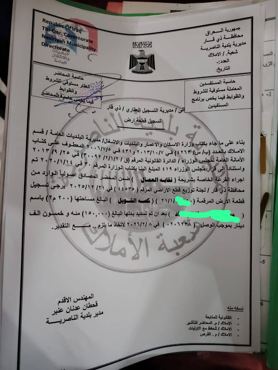 عندي قطعه مقاطعة 1\21 دافع رسم ١٥٠ ومسلم للمحاميه ٥٠٠ مسويله وكالة وطابع كتاب تمليك برمضان لو ورا رمضان تخابرك المحاميه تكلك تعال استلم الطابو كلشي مكمل بقى بس القيد القطعة بسمي اصولي ومحتاج مبلغ واريد ابيعه ( 25 ) موقع القطعة قرب سيطرة الشريف القديمه بصف الاراضي المخدومة **إذا كنت صاحب هذا الإعلان وتريد حذفه لأي سبب، رجاءا أرسل رسالة إلى الدعم الفني**