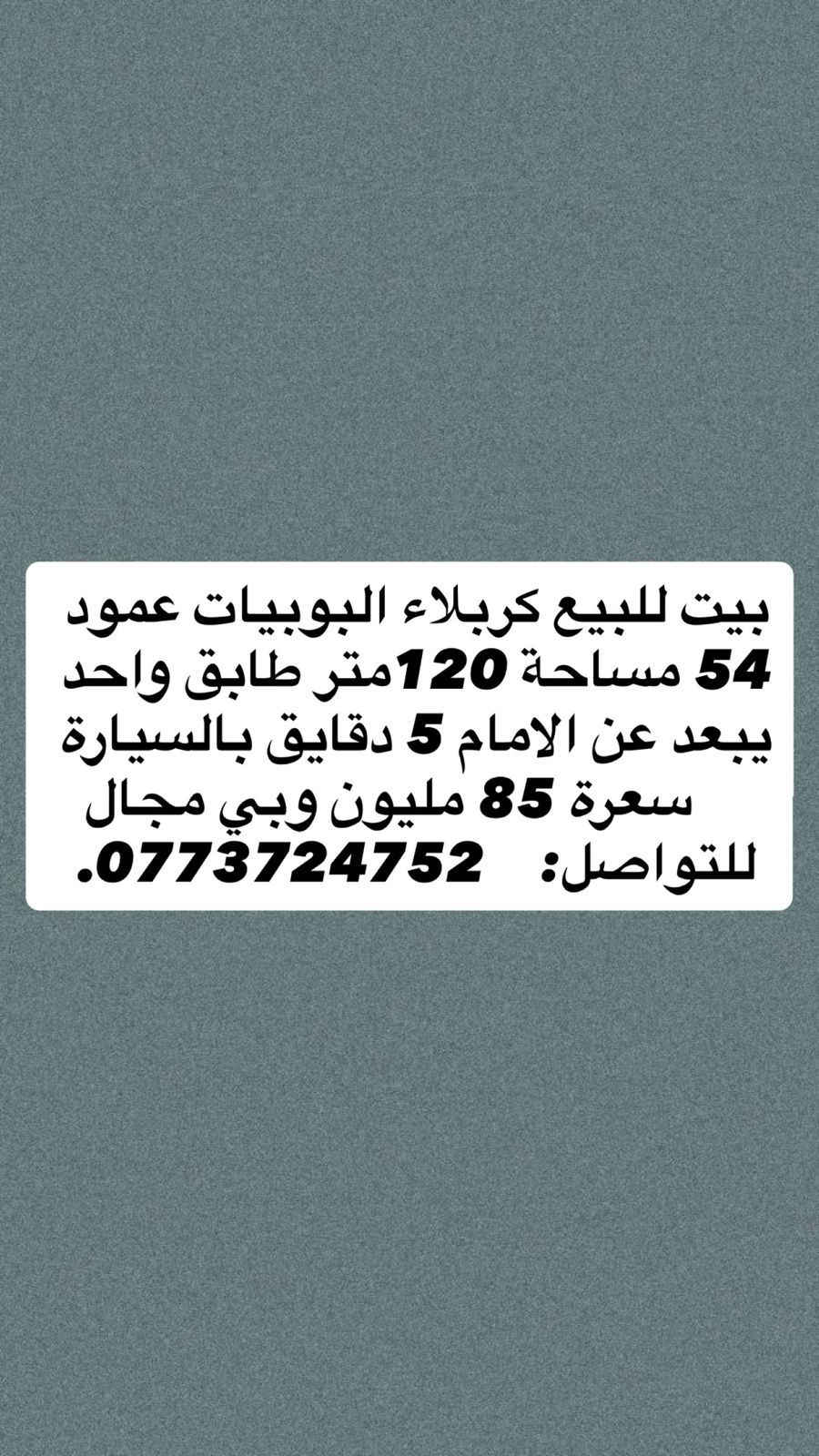بيع مستعجل كربلاء البوبيات **إذا كنت صاحب هذا الإعلان وتريد حذفه لأي سبب، رجاءا أرسل رسالة إلى الدعم الفني**