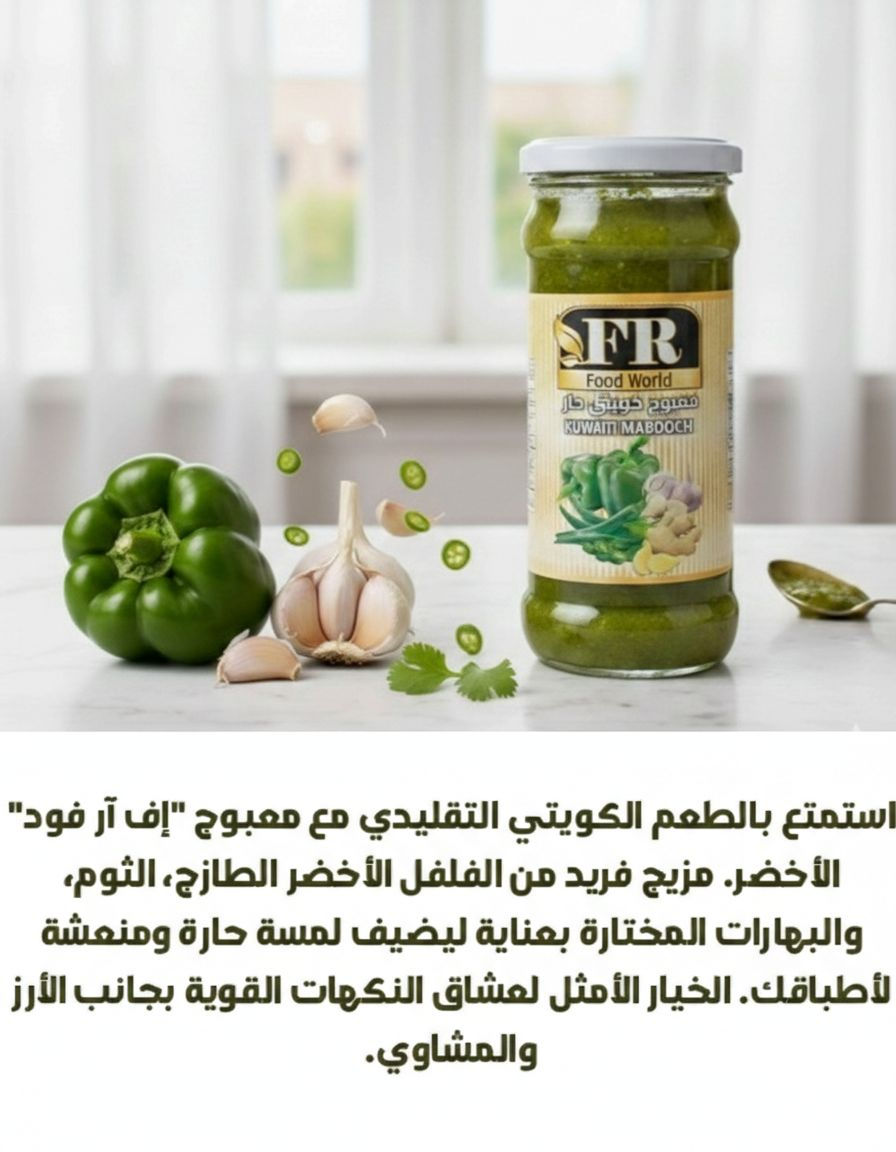 معبوج كويتي أخضر من FR 🌶️ خلطة فلفل أخضر طازج + ثوم + بهارات مختارة بعناية حتى يضيف لأكلك لمسة حارة ومنعشة ما تنوصف 😋إذا تحب النكهة القوية… هذا اختيارك الصح 💚***********
