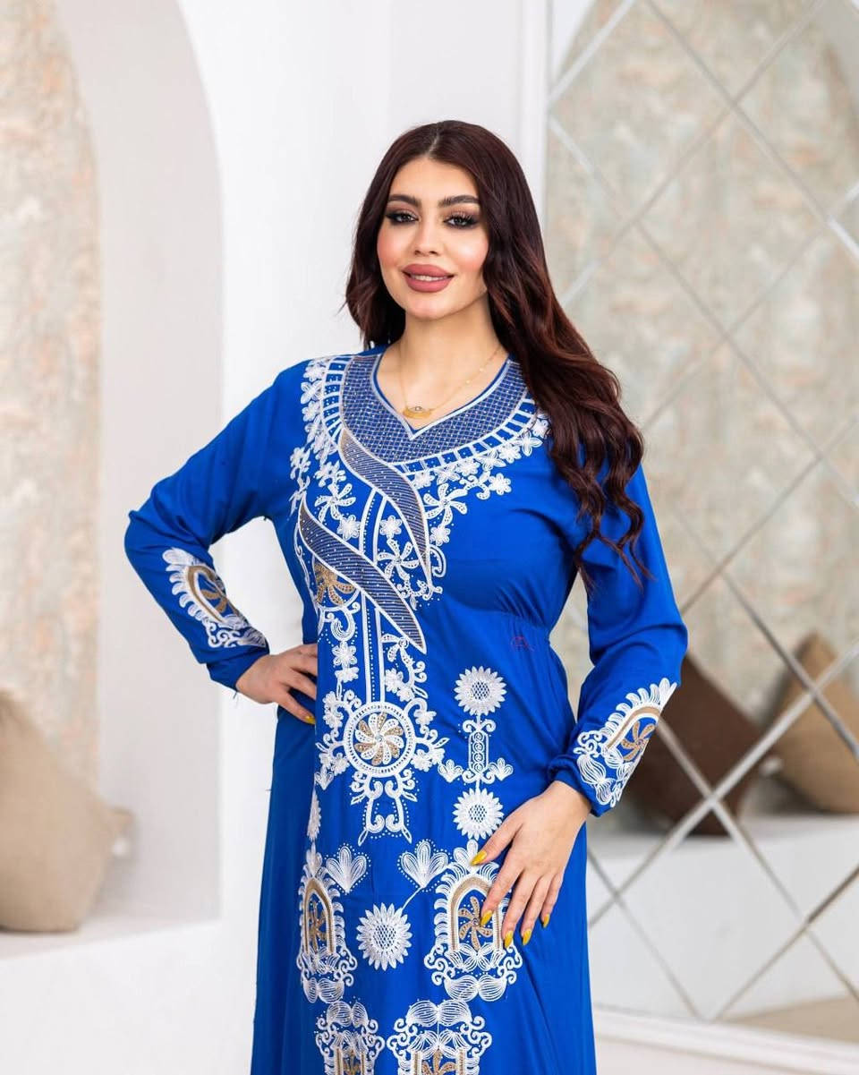 دشداشه نسائي • تطريز ستراس • قطن مراسي مصري