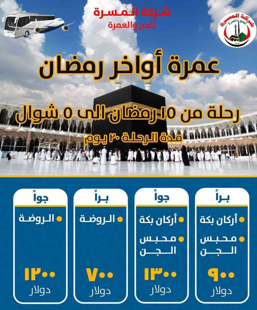 المسرة خير رفيق الى البيت العتيق ثقة،،،،،،، مصداقية ،،،،،، امان معك في عمرتك لحظة بلحظة باشراف متعهدين ومتعهدات ارشاد ديني للمذهبين نجاحنا تجاوز ال 25 عام للحج والعمرة اسال عن المسرة اخوكم سيد مصطفى الحربي بغداد الزعفرانية ***********