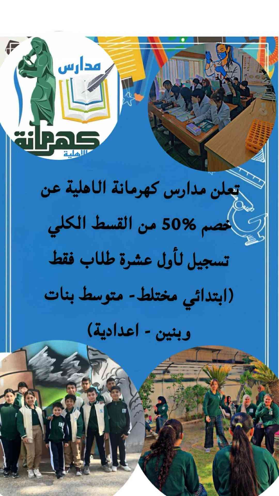 فيس بوك :مدرسة كهرمانة الاهلية الفرع الاول : الكرادة شارع المسبح الفرع الثاني : الدورة الاثورين خلف مدرسة النهضة للتواصل عبر الواتساب:***********
