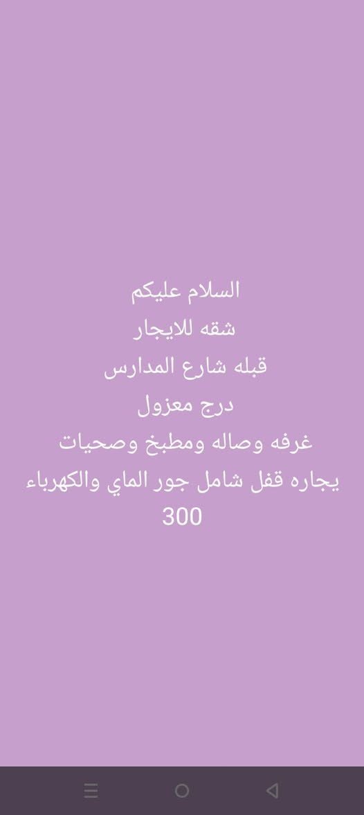 السلام عليكم شقه للايجار قبله شارع المدارس درج معزول غرفه وصاله ومطبخ وصحيات يجاره قفل شامل جور الماي والكهرباء 300 البصرة, العراق **إذا كنت صاحب هذا الإعلان وتريد حذفه لأي سبب، رجاءا أرسل رسالة إلى الدعم الفني**