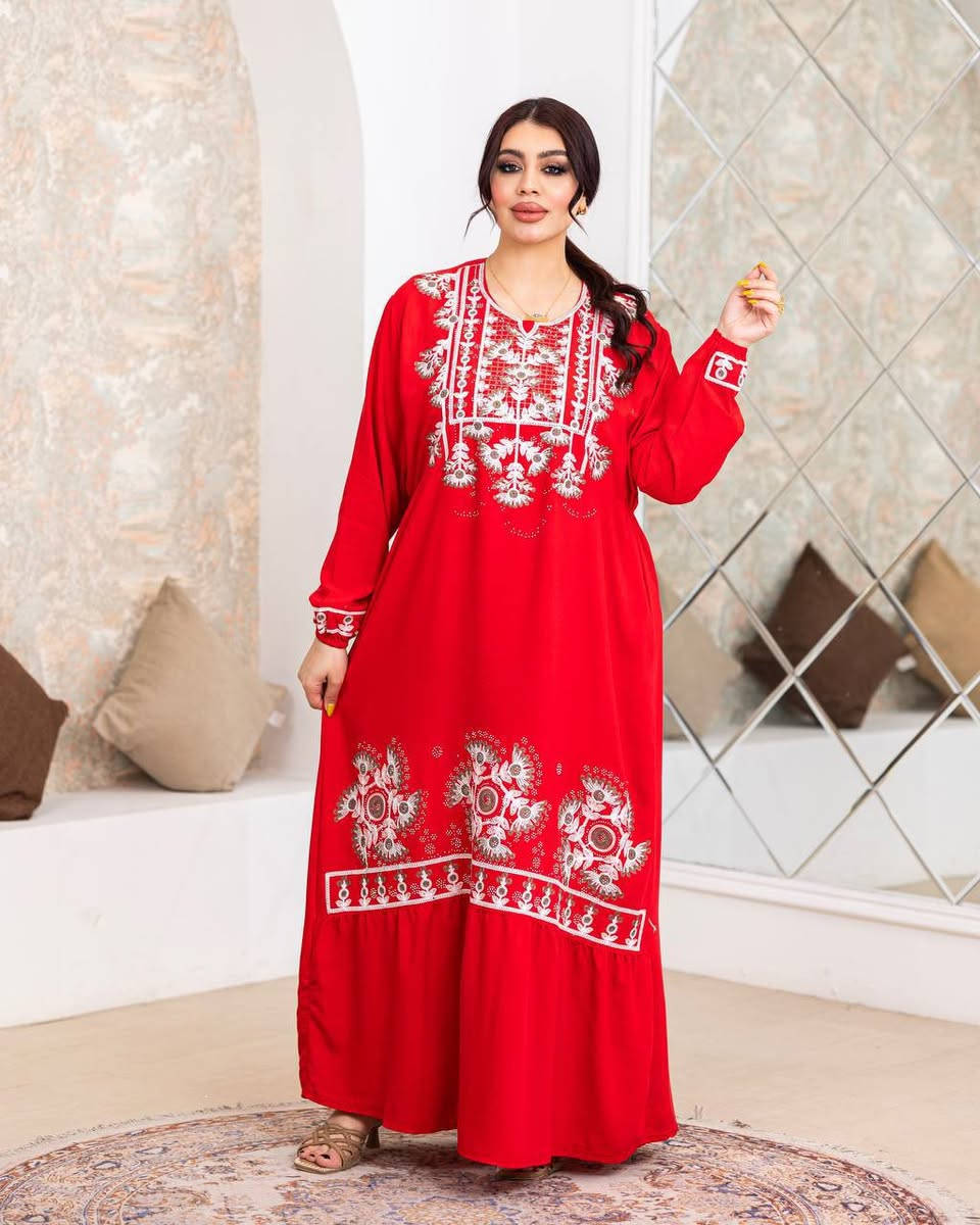 دشداشة نسائية • تطريز وستراس • مقاسات ٢× و ٣×