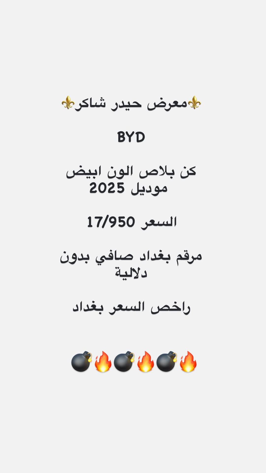 السلام عليكم 🏛️🏛️ معرض حيدر شاكر 🏛️🏛️ وصول بي وايدي كن بلاص 🔥🔥17/950🔥 ابيض 🔥كن بلاص الون ابيض 🔥 مرقم بغداد صافي بدون دلاليه 📍📍📍📍📍📍📍 🔥🔥ونسكم بل عروض 🔥🔥 📍العنوان مجاور كليه القانون حبايبً كلبي العنوان بغداد الكريعات معرض حيدر شاكر نتزل جسر مال وقف السني تطلع كبل مكتوب قطعه 🔥🔥معرض 🔥🔥معرض حيدر شاكر 🔥🔥 اوقات الدوام جميع ايام الاسبوع من الـ10 صباحـاً الى الـ10 مساءً للاستفسار يرجى الاتصال على الارقام الاتية ☎️: للاستفسار *********** للاستفسار *********** للاستفسار *********** للاستفسار*********** للاستفسار *********** للاستفسار*********** للاستفسار *********** للاستفسار *********** بغداد الكريعات شارع المعارض🚙🚙 متوفر🟥بيع🟥شراء🟥مراوس🚦⭐️ ولاتنسى اذا حبيت تستبدل سيارتك القديمه معرض توفر الاستبدال بين القديم والجديد بنظام المراوس وبخدمتكم 🚗🔛🚙 #كورولا #كوروله #كورولة #كورلا #كورله #كورلة #تويوتا #كيا #هيونداي #نيسان #corolla #كروس #توسان #توكسان #سبورتاج #سورنتو