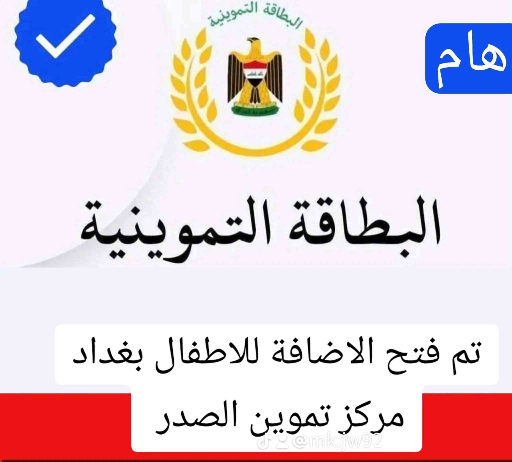 تم فتح الاضافة دون ١٢ سنه للبطاقة التموينية محافظة بغداد فرع تموين الصدر لخدمة الاضافة زيارة مكتنبا الجواد للتقديم الالكتروني بغداد جميلة الثانية خلف زامل ابو الداطلي بجانب مخبز الروعة واتساب ***********