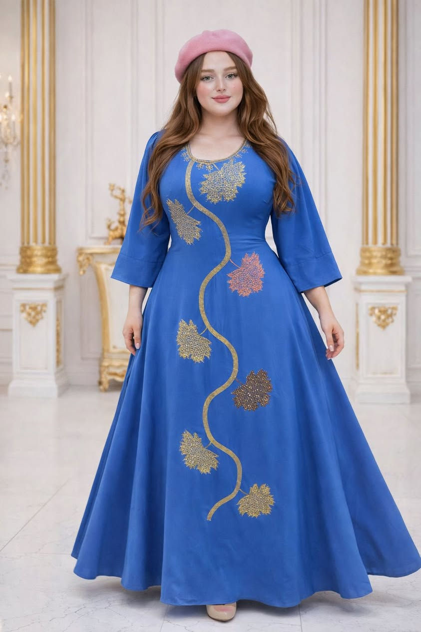 دشداشه نسائي • تطريز ستراس • قطن مراسي مصري