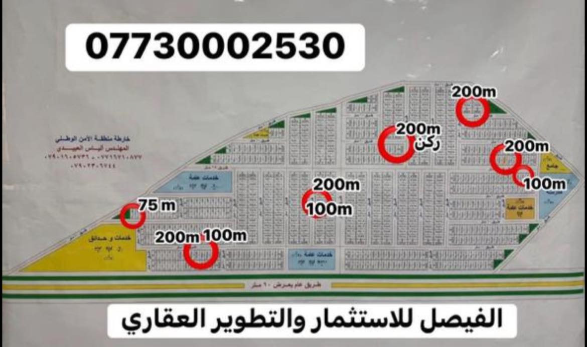 توفرت افضل عروض اراضي الامن الوطني 🏡 🛑مساحات مختلفة : 50 / 75 / 100 / 200 متر 🛠️ ⭕️شوارع مميزة : 10 / 15 / 20 / 60 متر 📍 🛑جميع الاراضي مدفوع الخدمات ( مطور عقاري ) : ⭕️كهرباء ⭕️ماء ⭕️صرف صحي ⭕️تبليط ⭕️انترنت 🛑موقع الاراضي : الغزالية نهاية شارع المرور 📌 🛑للاستفسار الاتصال او مراسلة وات ساب : *********** 📌او زياره موقعنا مكتب الفيصل للاستثمار والتطوير العقاري الغزاليه/الشارع العام مقابل صاحب البراق