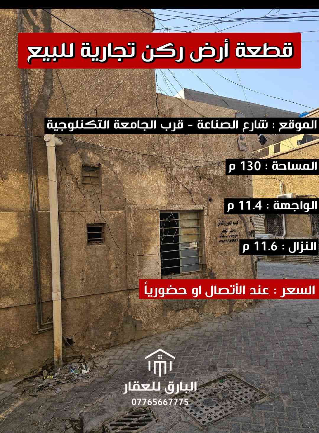 🔱 قطعة أرض تجارية ركن للبيع 🔱 الموقع📍 : الكرادة - شارع الصناعة قرب الجامعة التكنلوجية ⭕ المساحة : 130 م ⭕ الواجهة : 11.4 م ⭕ النزال : 11.6 م ⭕ ركن على شارعين ⭕ السعر : عند الإتصال او حضورياً ⭕ للإستفسار : ( الواتساب متاح ) 📱 *********** ⚠️” تحذير : هذا العرض قد يختفي قبل أن تقرر !“ 🟢 نستقبل عروض البيع ، الشراء ، الإستبدال ، إدارة الأملاك ، و الإيجارات بأنواعها ( سكني ، تجاري ، خدمي ) 🟢 عنوان المكتب📍: بغداد - الكرادة داخل - قرب مطعم الصبايا - فرع مدرسة لبنان ( موقعنا مثبّت على Waze , Google maps ) #البارق_للعقار ٣