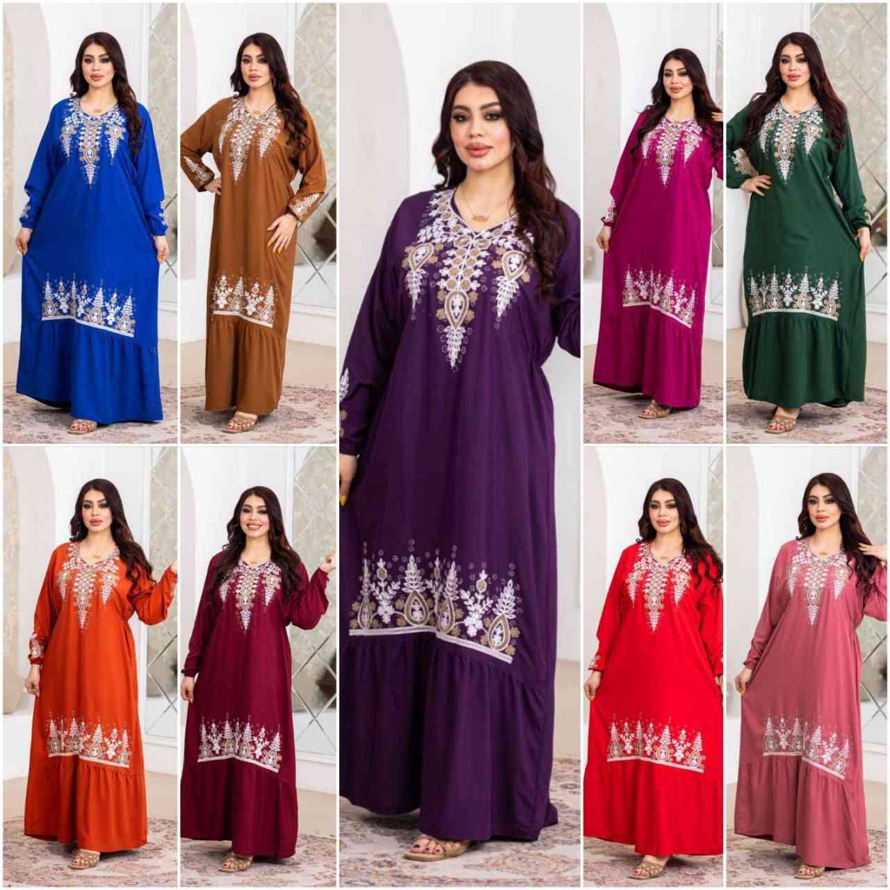 دشداشة نسائية • تطريز وستراس • مقاسات ٢× و ٣×