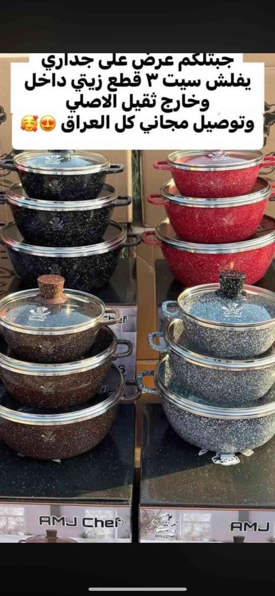 اجاكم شهر رمضان وتردون جدورة زينه جبتلكم نوعيه إذا مو فول زيتي ترجع بيد المندوب سنه كامله إذا شخطت وراح اللون ترجع ويوصلج غير سيت الحمدلله صار سنين اوفر هاي نوعيه ماكو وحدة اخذته إذا ماشكروني عليهن السيت يجي ٣ قطع و٣ قياسات وعليه عرض توصيل مجاني وأول سيتين راح ينحجزون راح يوصل وياه هديه رفعولي البوست حبايب قلبي ❤️🧡 **إذا كنت صاحب هذا الإعلان وتريد حذفه لأي سبب، رجاءا أرسل رسالة إلى الدعم الفني**