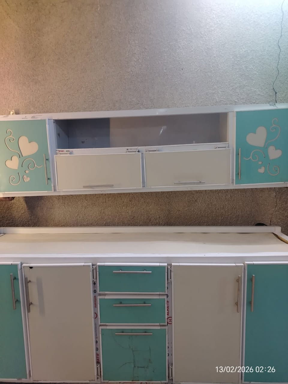 كاونتر المنيوم صيني • ٢م ملحق ٢م • سنك مرمر ١م٢٠سم