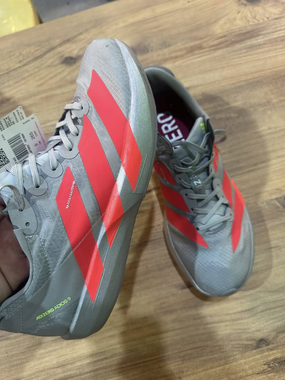 Adidas adizero Adios 9 قياس 43 وثلث طول القدم 27.5 قطعة وحدة فقط **إذا كنت صاحب هذا الإعلان وتريد حذفه لأي سبب، رجاءا أرسل رسالة إلى الدعم الفني**