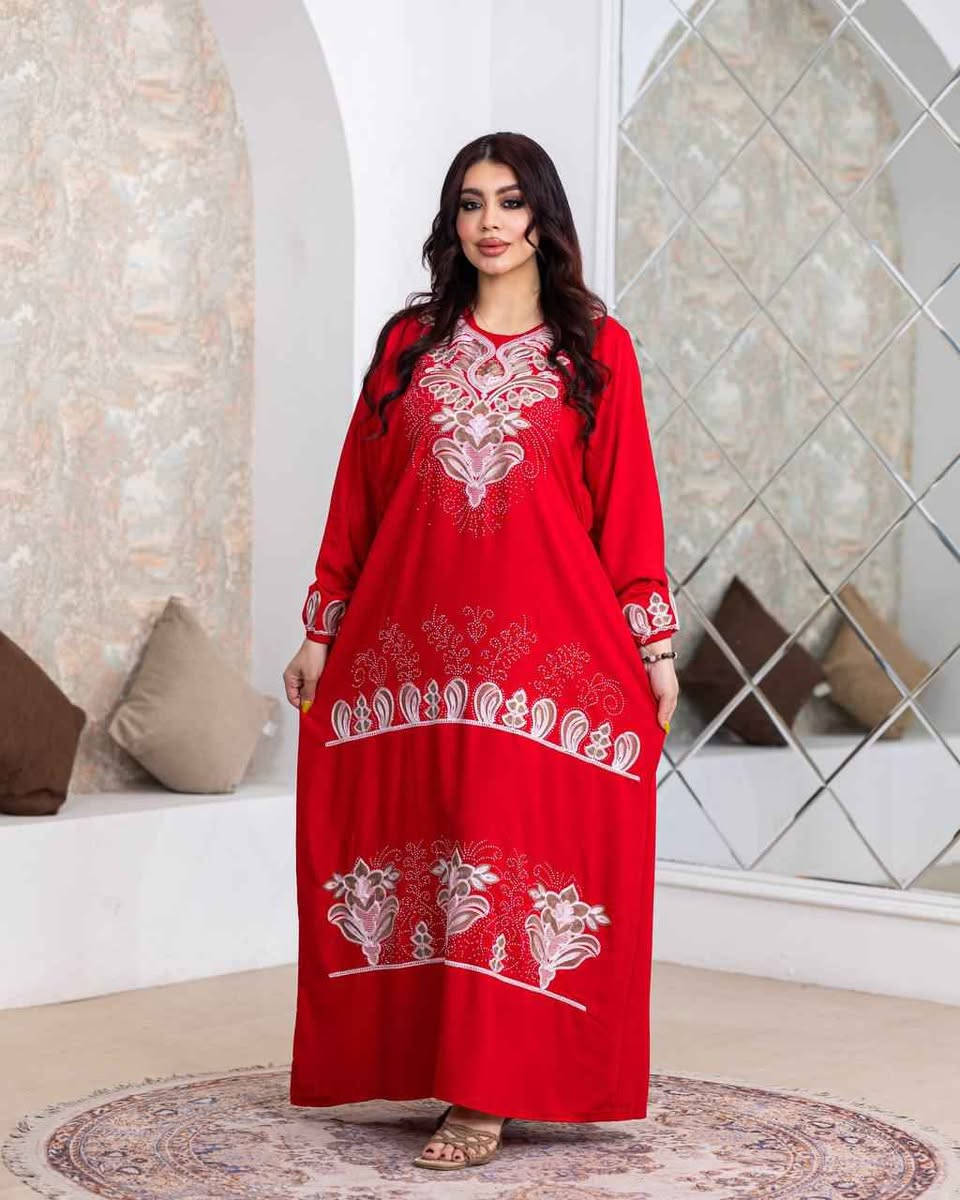 دشداشة مصري • قطن مطرز استراس • فري سايز ٨٥ك