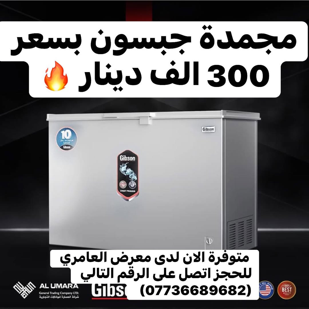 توفرت مجمدات Gibson بأحجام مختلفة لدى معرض العامري🔥✨ متابعينا الاعزاء تم وصول مجمدات ماركة (Gibson) الاصلية وبأسعار مميزة سارع بالحجز قبل نفاذ الكمية ✨ 📌مميزات ▪️متوفر الان بحجم 10 قدم و 14 قدم ✅ ▪️ تبريد سريع ومتساوي❄️ ▪️ مساحة واسعة لحفظ كل احتياجاتك✨ ▪️ هادئة وعملية تدوم معك لسنوات✅ ▪️ موفرة للطاقة الكهربائية ⚡️ 📞 للتواصل والاستفسار: [***********] 📌 التوصيل متاح لجميع مناطق كربلاء 📍العنوان: كربلاء _ حي الرسالة_مقابل ملعب كربلاء الدولي #معرض_العامري #تخفيضات #كربلاء #تسوق #عروض #هيتاشي #عرض #أجهزة_كهربائية_كربلاء #Samsung #royal #توصيل_كربلاء #كربلاء_تسوق #hitachi #خلاطات #خلاط #مكنسة #مكنسة_كهربائية #توصيل_كربلاء #اجهزة_منزلية #gibson #مجمدات #ثلاجات #مجمدة #ثلاجة #مجمدة_جبسون #hitachi #LG #craft