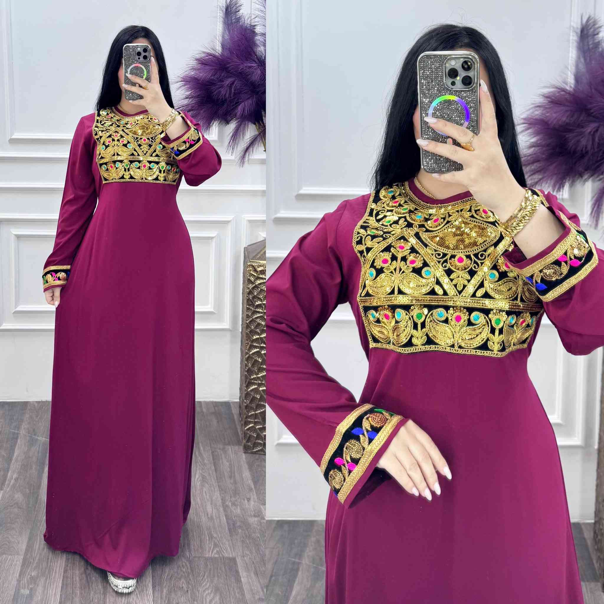دشداشه نسائي • تطريز ستراس • مقاس 2x/3x