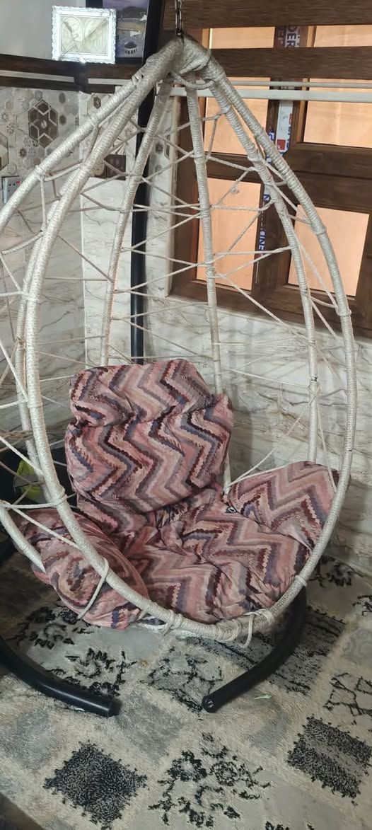 كرسي معلق • وسائد حمراء • تصميم حديث