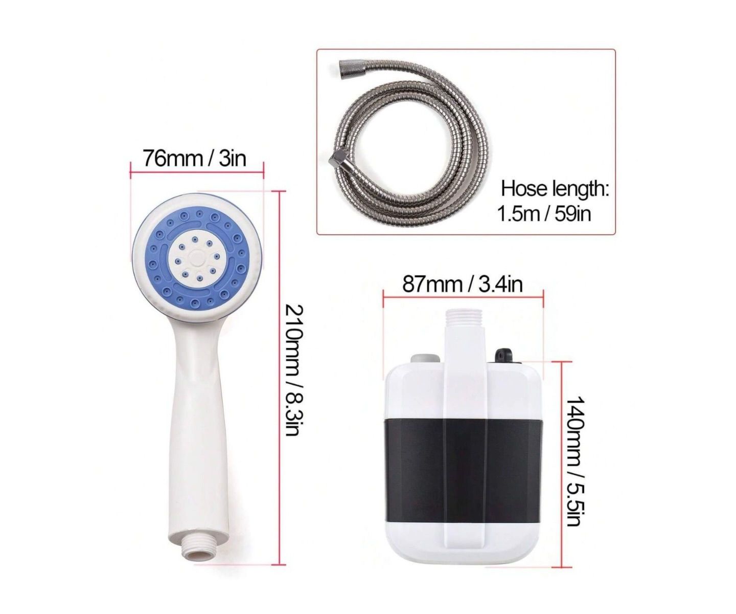 بالة دوش تخييم سفري محمول بالشحن 20 الف شامل التوصيل 🔥– للاستحمام في أي مكان! الاستخدامات: مثالي للاستحمام أثناء رحلات التخييم أو التخييم البحري. مناسب لغسل الأدوات أو السيارات أو الحيوانات الأليفة. يُستخدم لري النباتات أو في الحدائق. مثالي للاستخدام في الشواطئ أو للمزارعين أو لتنظيف المعدات في الخارج. المميزات: يعمل ببطارية ليثيوم مدمجة بسعة 2000 مللي أمبير. قابل للشحن عن طريق منفذ USB. تدفق ماء مستمر بقوة 4 إلى 5 لتر في الدقيقة. تصميم مضغوط وخفيف الوزن لسهولة الحمل. زر تشغيل عملي مع مؤشر تشغيل. خرطوم ماء بطول 1.5 متر، مرن ومتين. رأس دوش مريح بفتحات متناسقة لضغط ماء مناسب. يأتي مع خطاف تعليق وحامل لتثبيت الدوش. محتويات الصندوق: مضخة مياه كهربائية بالشحن. رأس دوش. خرطوم ماء طوله 1.5 متر. كابل شحن USB. خطاف تعليق. قاعدة تثبيت بلاستيكية. المواصفات الفنية: أبعاد المنتج: 14 × 8.7 × 5.6 سم. أبعاد العلبة: 22.5 × 13 × 15.7 سم. البطارية: ليثيوم 2000mAh. جهد الشحن: DC 5V. **إذا كنت صاحب هذا الإعلان وتريد حذفه لأي سبب، رجاءا أرسل رسالة إلى الدعم الفني**