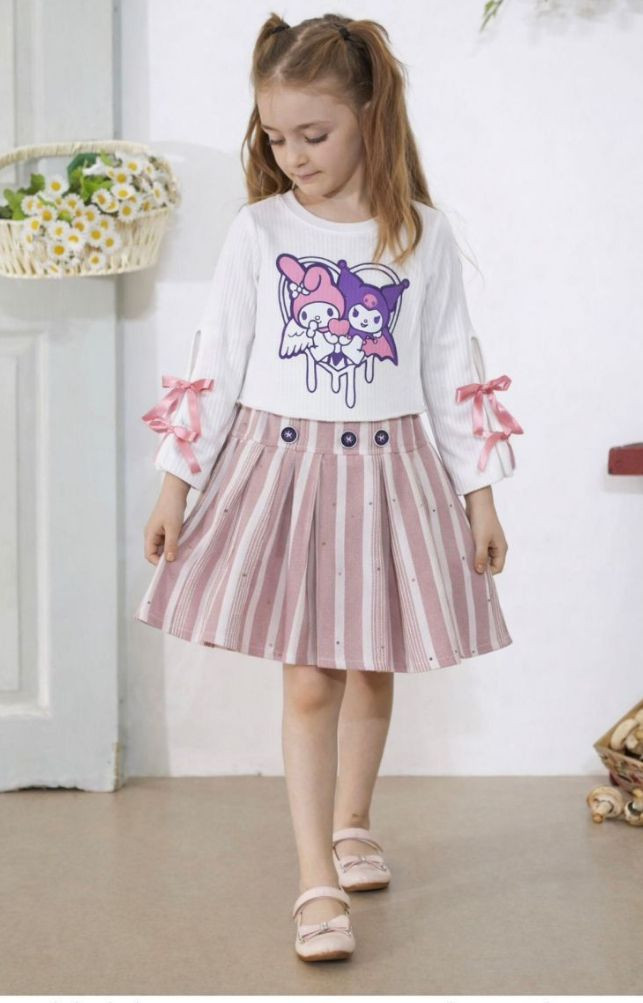طقم بناتي كوري • مقاس ٦-١٢ سنة • درزن