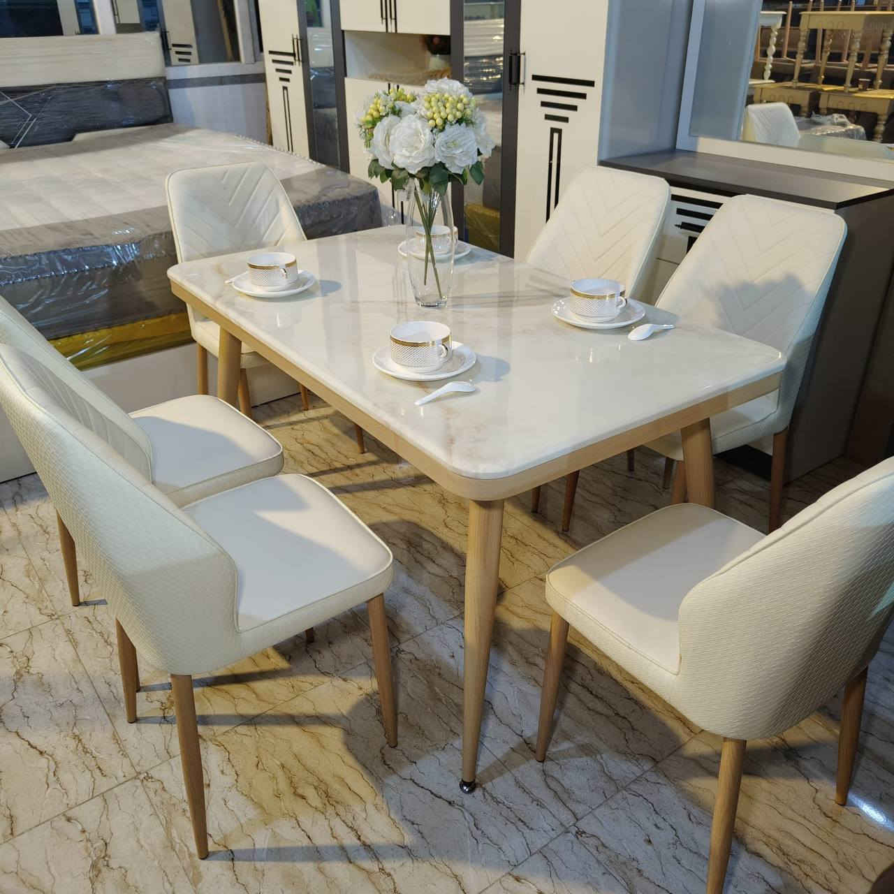 ميز طعام • مرمر بورسلين • 6 كرسي