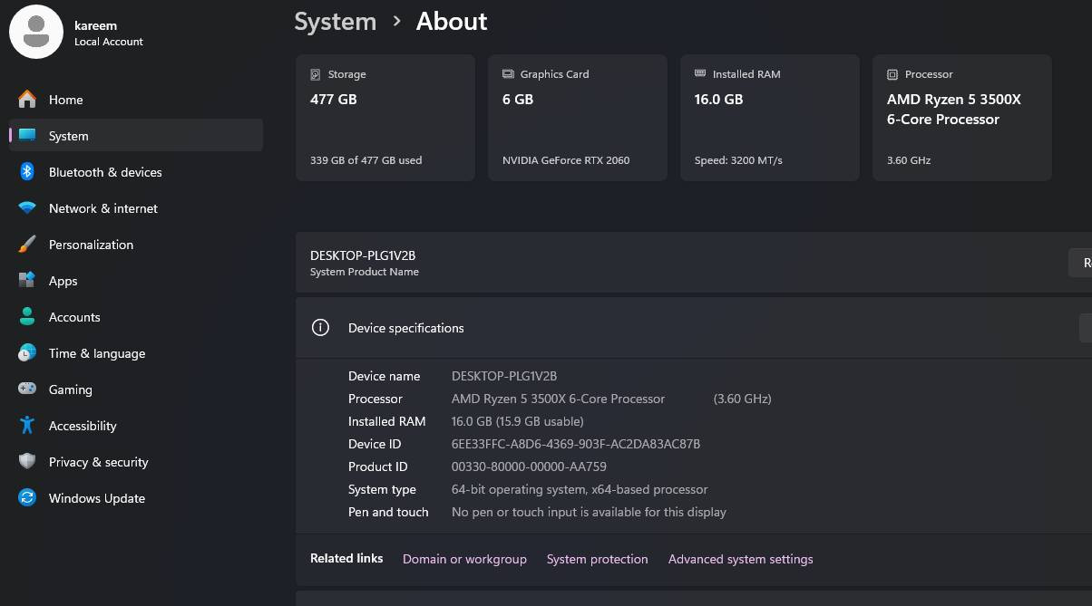 RX5700XT ٨جيجا • رام ١٦جيجا DDR4 ٣٦٠٠ • M.2 ٥١٢جيجا