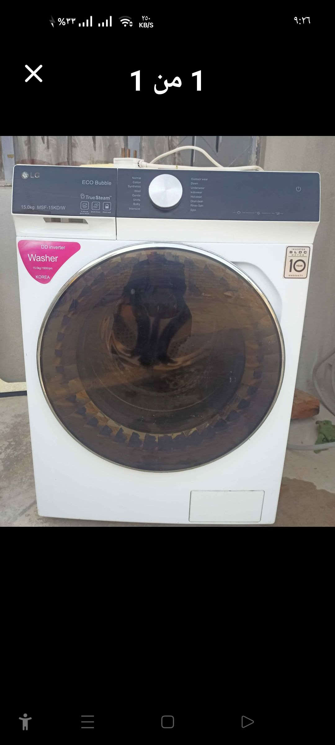 غسالة 15كيلو LG شبه جديدة مستعملة فترة قليلة بيها خلل بسيط ما اعرف بيها 250 الف وبيها مجال شوية ***********