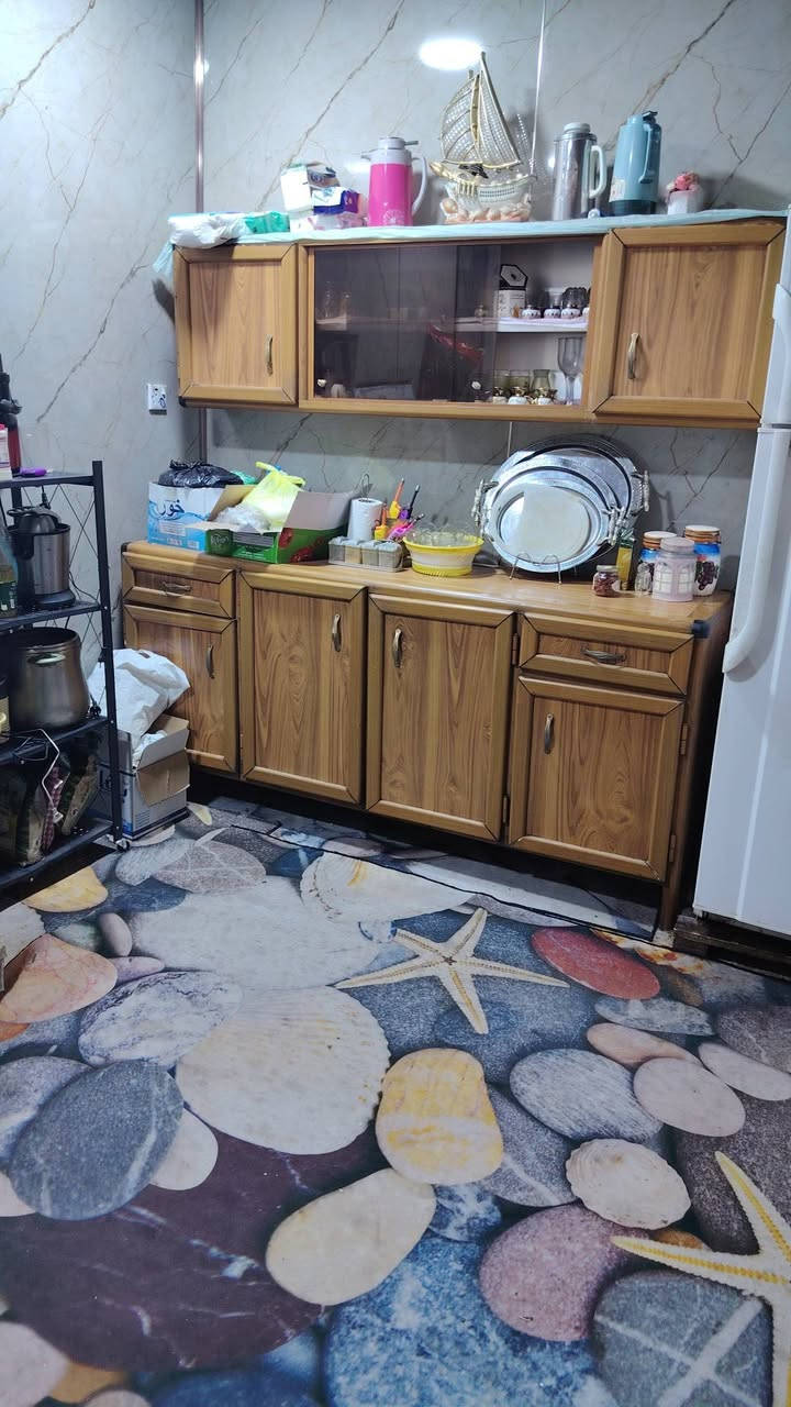 كاونتر خشب • حوض رخام طبيعي • بيه تصليحات