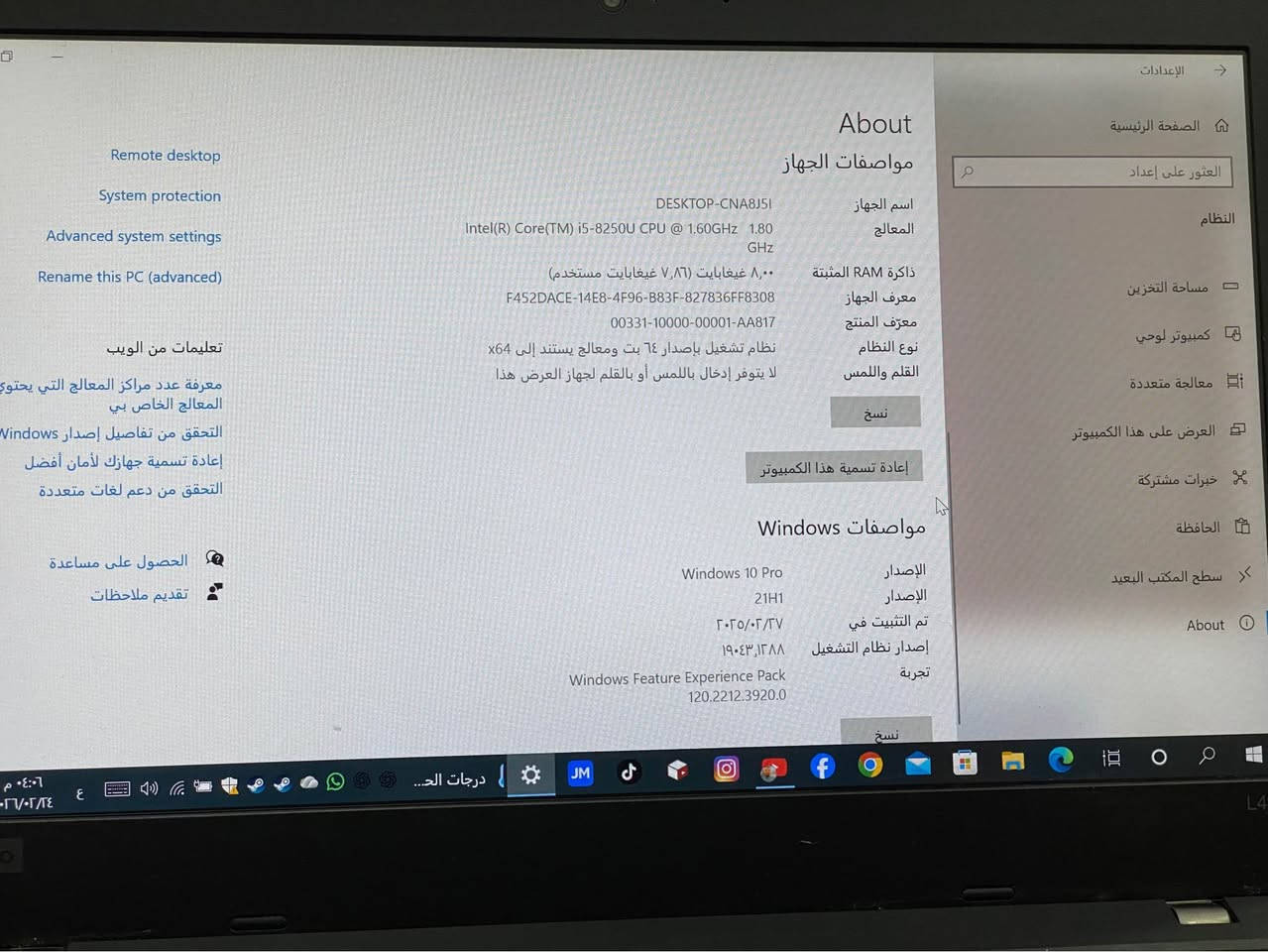 لابتوب لينوفو مستعمل للبيع شاشة 15,6 DESKTOP-CNA8J5| Intel(R) Core(TM) i5-8250U CPU @ 1.60GHz 1.80 GHz ٨,٠٠ غيغابايت ب240الف مكاني الدورة *********** مامتوفر بلفيس بس اتصال بغداد, العراق
