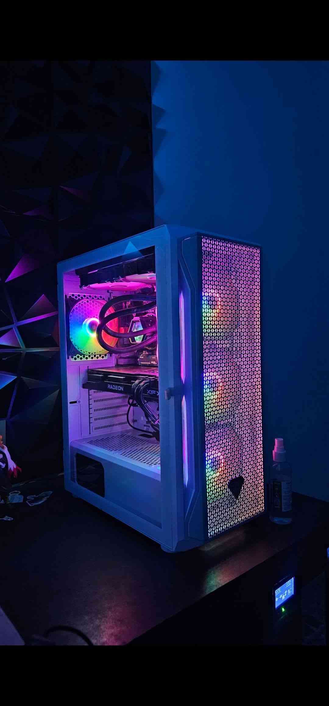 كيس كيمنك للبيع – مكاني الموصل 📱 واتس: *********** المواصفات: CPU: Intel Core i5 12400F GPU: AMD RX 5700 XT ( صكار 3060 المايعرف الكرت خلي يشوف مراجعات للكرت) RAM: 16GB (2×8) 3200MHz RGB Motherboard: MSI H610M-G DDR4 Storage: SSD 256GB HDD 1TB Power Supply: 650W Case 4fan(نفس الي بصورة) 💰 السعر: 840,000 دينار شاشة mass 27 180hz FHD =سعر160الف معا الكارتون يو بي اس اوفلاين =100 الف